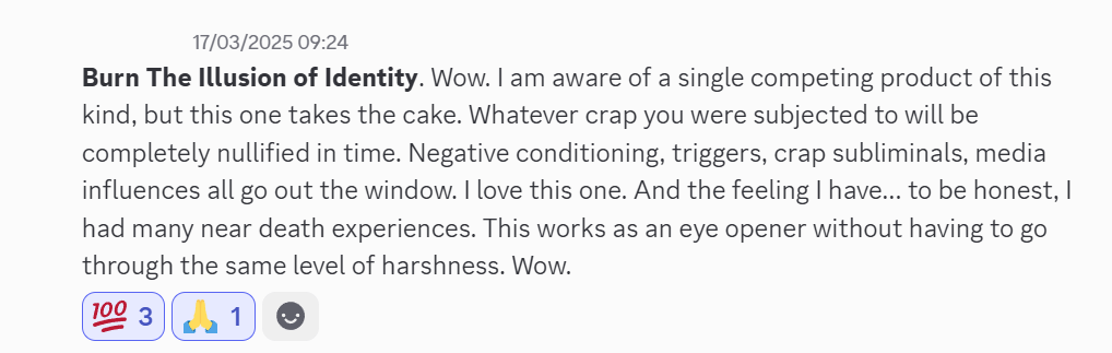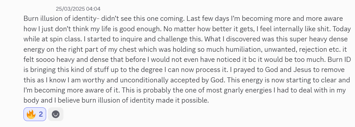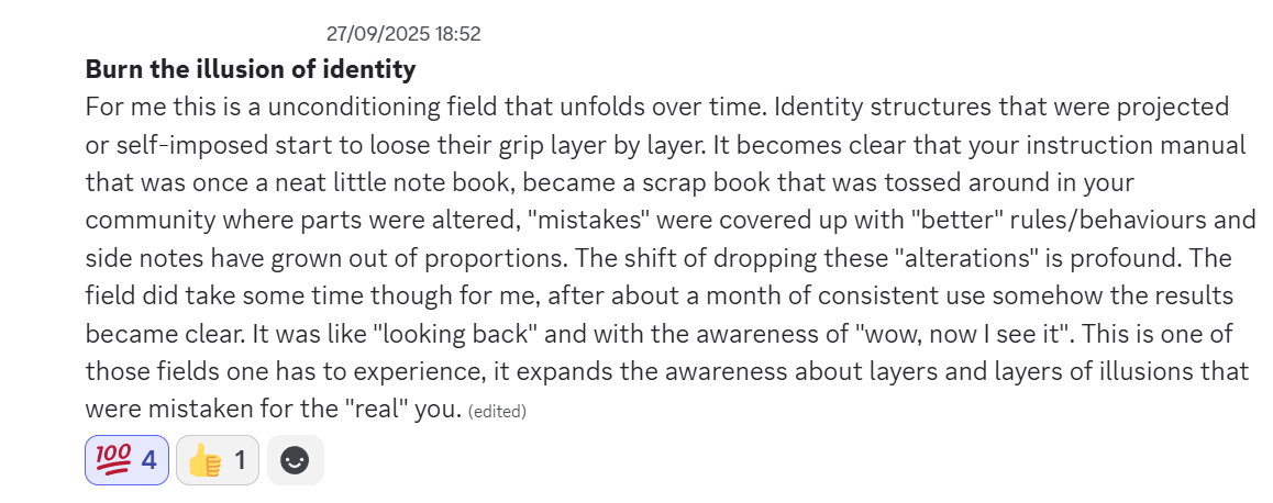 Get Burn the Illusion of IdentityRead what 455+ community members say about our fields. View testimonials in our Discord.