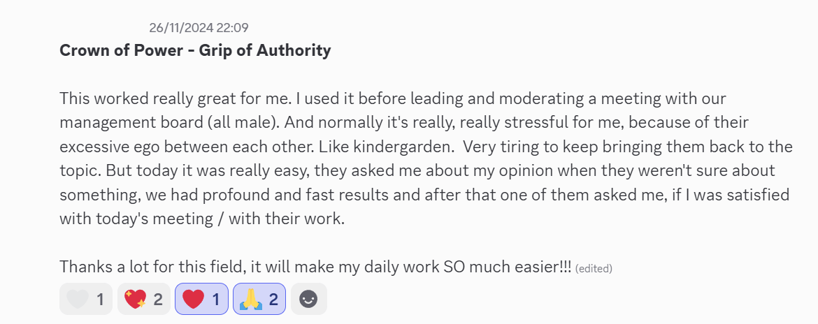 With consistent use, this tool will transform how you behave, how others perceive you, and the dynamics of your relationships. In no reality where you are actively using this tool will you be subjected to bullying or exploitation. You will no longer be deceived by others and their illusionary facades of power,they will sense that you cannot be fooled anymore.