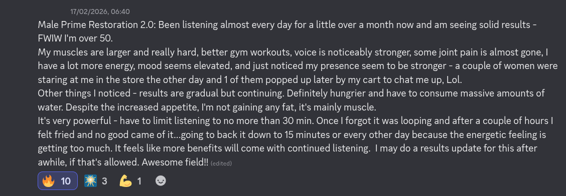 Note: As with the original, men aged 30 and above may notice the most dramatic contrast, as the field has more “distance” to restore between current state and peak masculine expression. However, 2.0 is carefully designed to adapt to each age, body, and baseline.