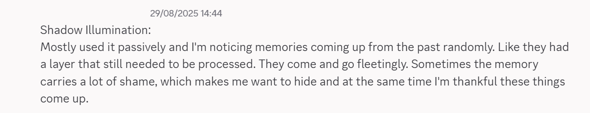 - Intelligent and Personalized: Tailored to your unique needs, Shadow Illumination aligns with your soul's guidance to prioritize and process what matters most for your growth. It works gently yet powerfully, ensuring the process is as comfortable as possible.