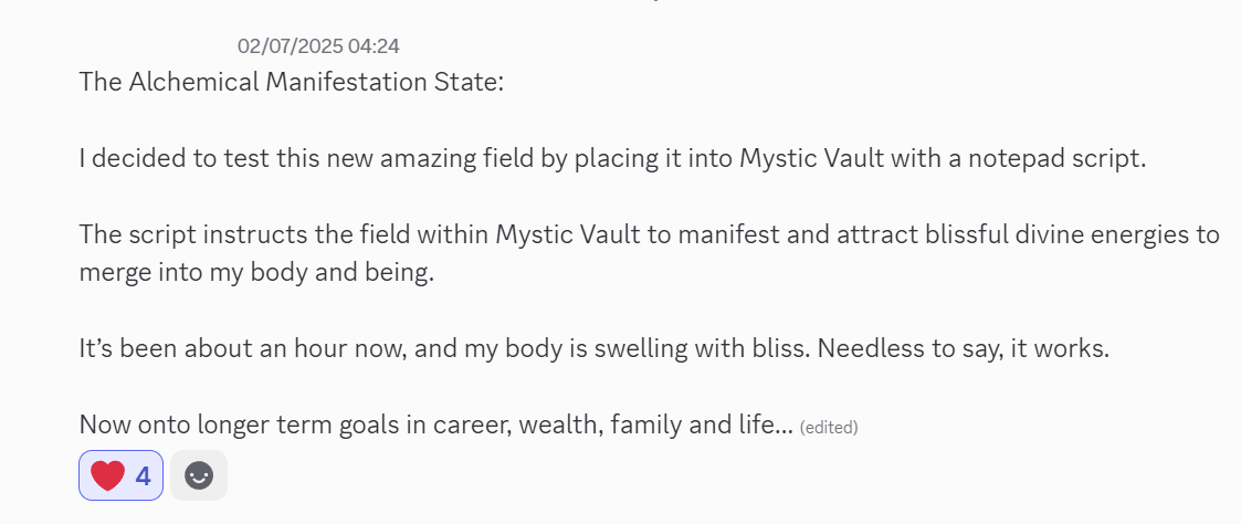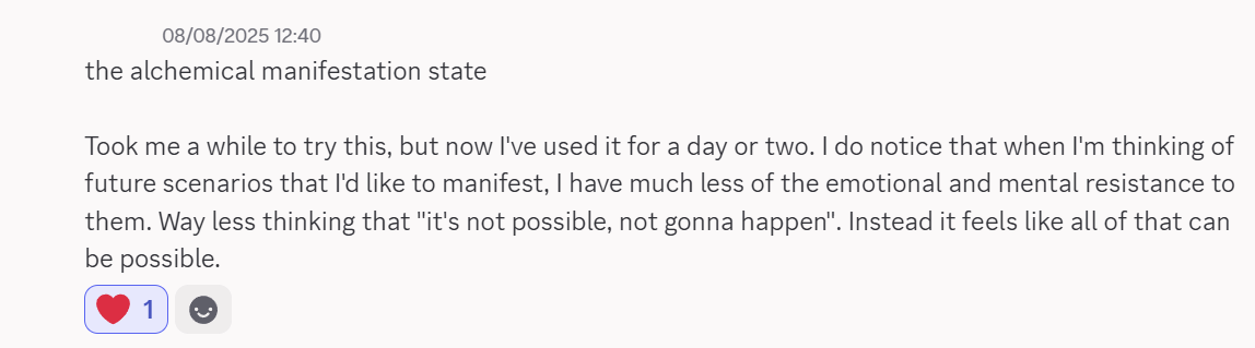 Get The Alchemical Manifestation StateRead what 455+ community members say about our fields. View testimonials in our Discord.