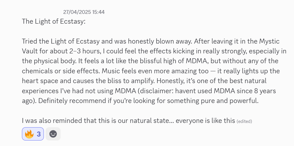 Get The Light of EcstasyRead what 455+ community members say about our fields. View testimonials in our Discord.
