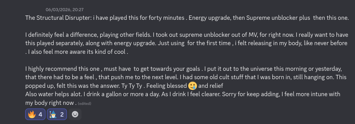The Structural Disruptor and Supreme Unblocker are naturally complementary. Where Supreme Unblocker performs deep, multidimensional clearing of blockages across every level of your being, The Structural Disruptor removes the rigid architectures that cause those blockages to form, persist, and rebuild in the first place. Using The Structural Disruptor alongside Supreme Unblocker means that as blockages are cleared, the structural foundations that held them in place are simultaneously dissolved, preventing regeneration, accelerating the clearing process, and allowing Supreme Unblocker to reach layers that were previously structurally sealed off. Together, they create a complete system: one dismantles the architecture, the other clears what was trapped inside it.